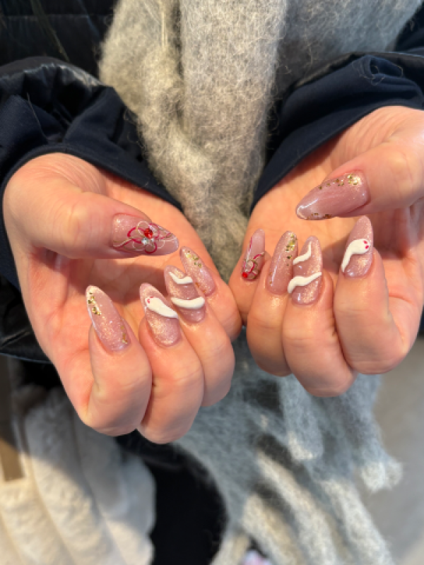 お題:お気に入りのネイルの写真を見せてくださいに回答♪これは…